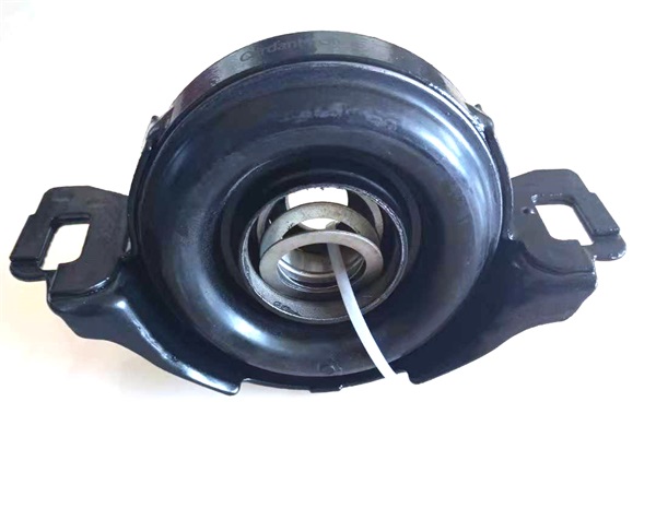 4.在拆裝中間支撐吊架時(shí),應(yīng)保證橡膠墊環(huán)位于U型吊架中心,不能扭曲變形,并保證橡膠墊環(huán)與總成軸線垂直后鎖緊,緊固中間支承的螺栓緊固扭矩為120~160N.m。